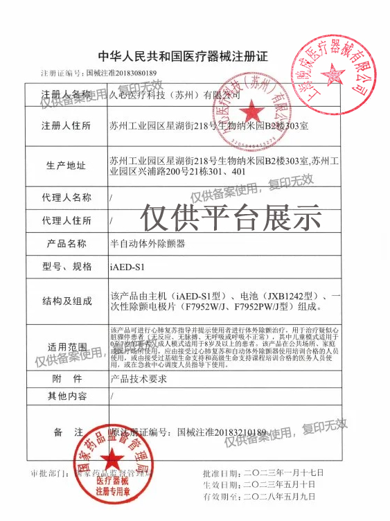 | 產(chǎn)品名稱 : | 久心醫(yī)療 AED 半自動體外除顫器 iAED-S1 心臟急救 |